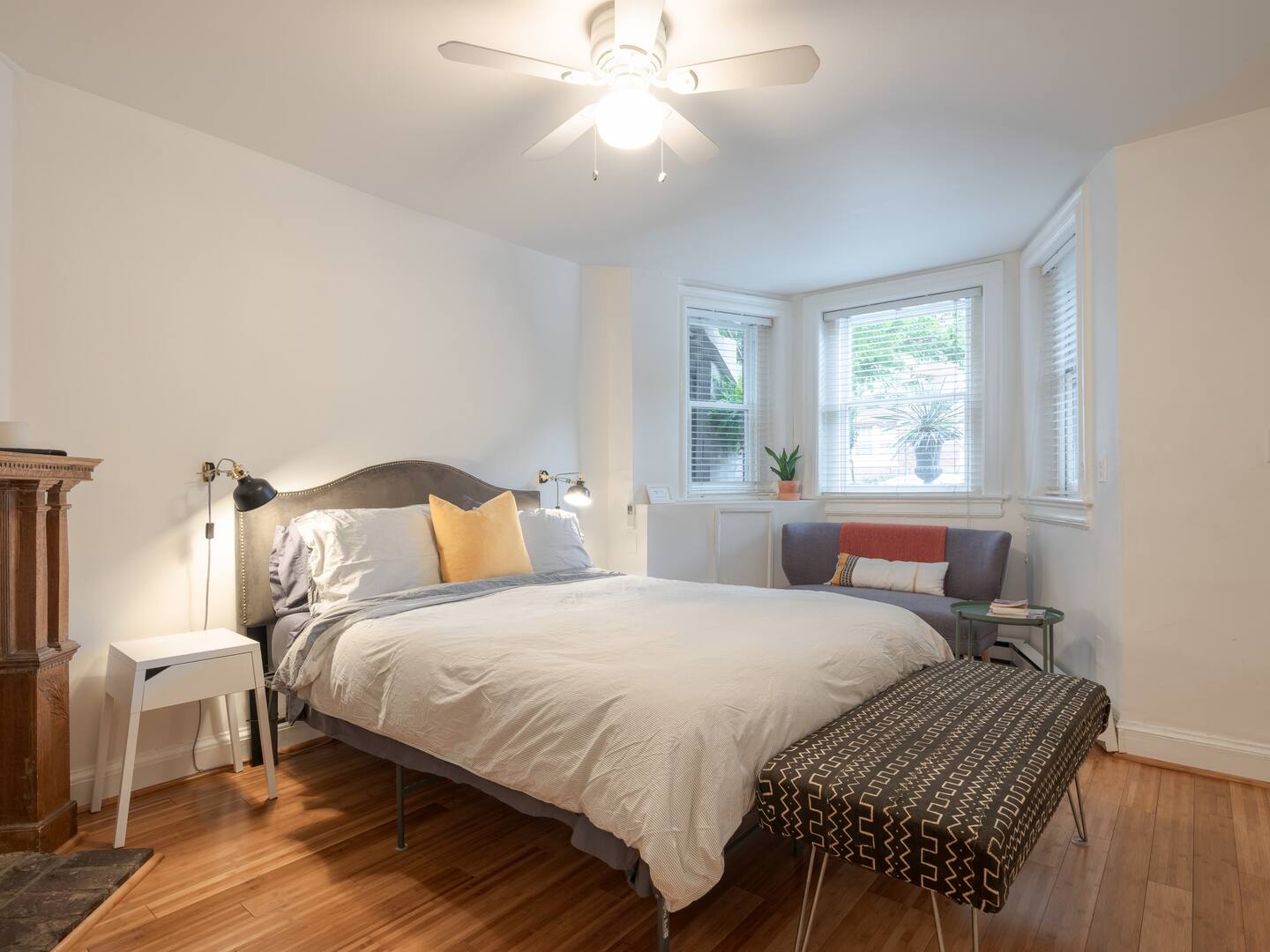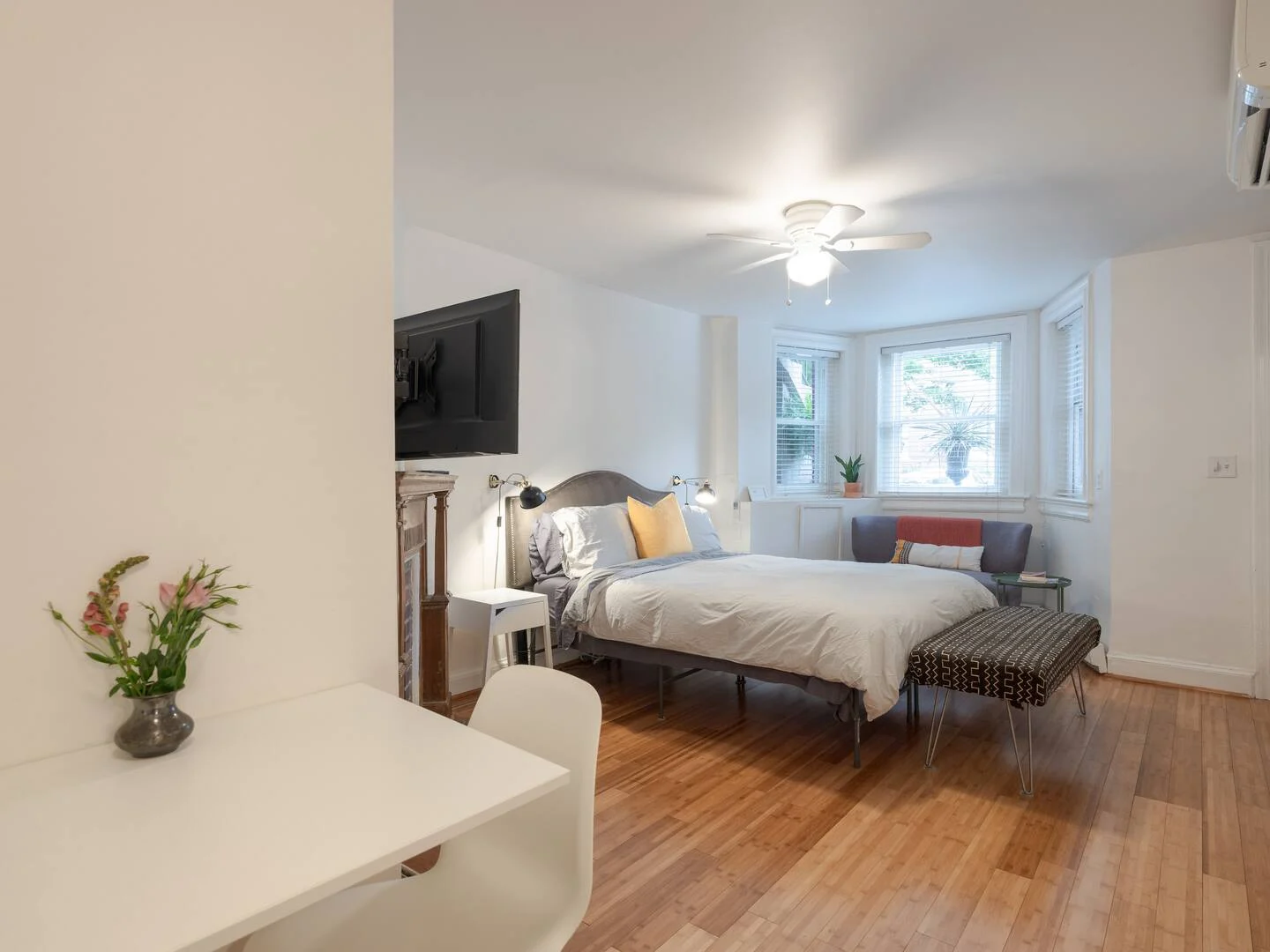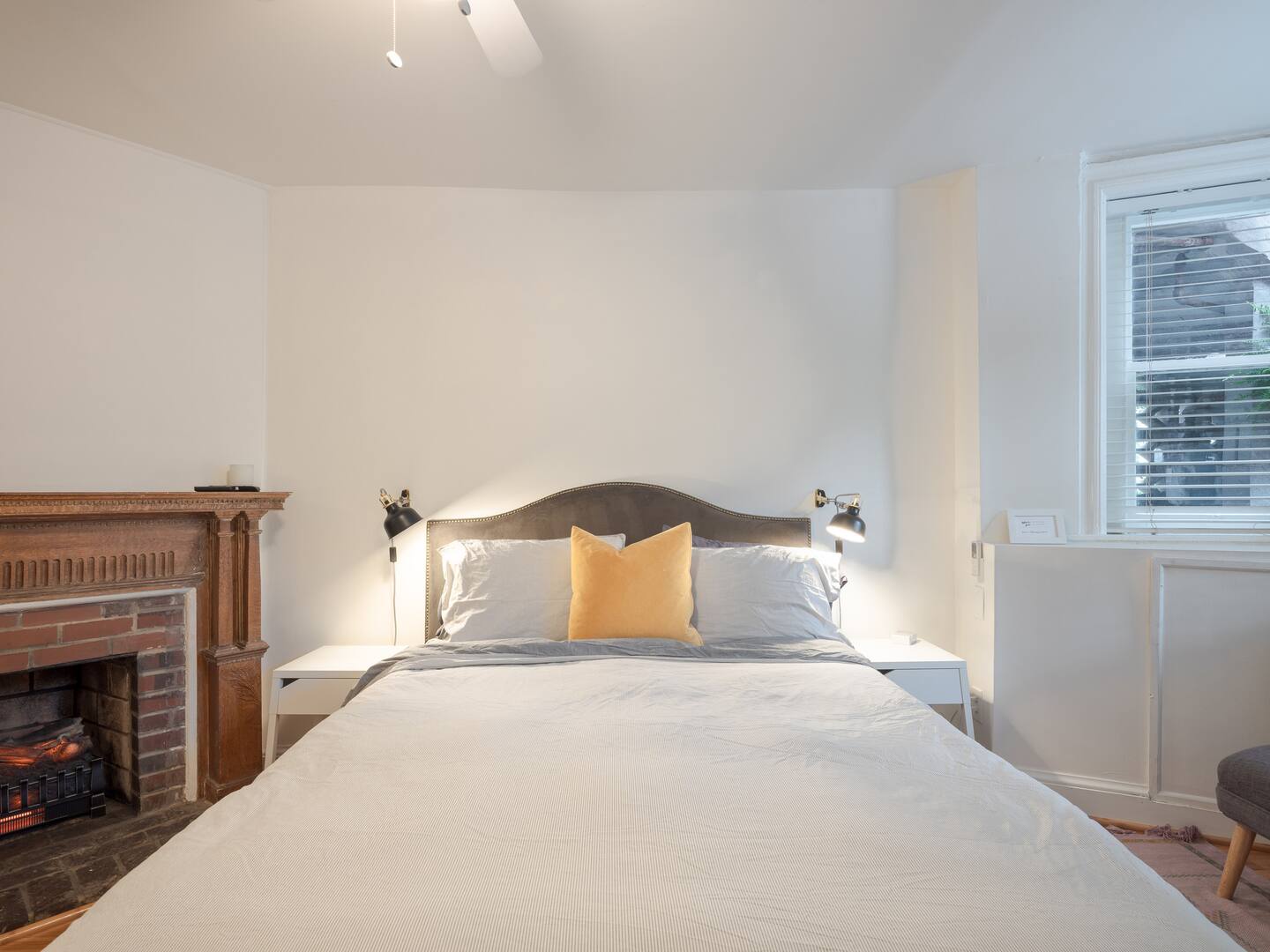 Relax after a long day in this tastefully renovated ground-level studio with period details and modern amenities. Warm by the electric fireplace surrounded by an antique carved mantle. Watch Netflix and Hulu from the comfort of the Queen-sized Tuft & Needle mattress. Prepare a delicious meal with ingredients from nearby Eastern Market and Union Market in the well-appointed vintage kitchen with dining space for two. Soak in the private full bathtub or rinse with the rain shower head. And enjoy a book over coffee in the bay window settee or front garden bench. This is your home away from home in DC.