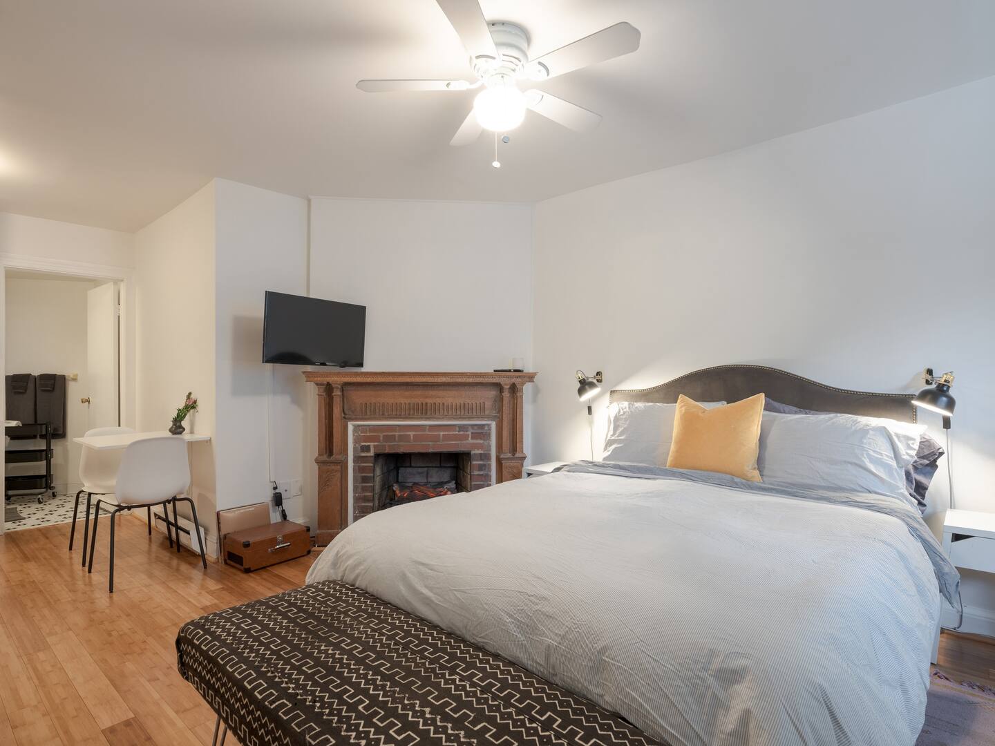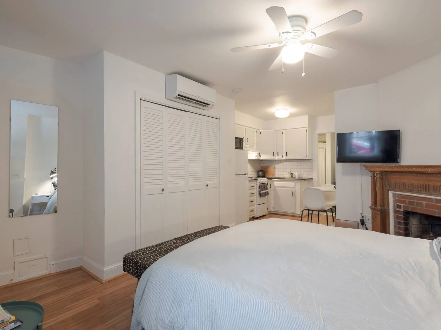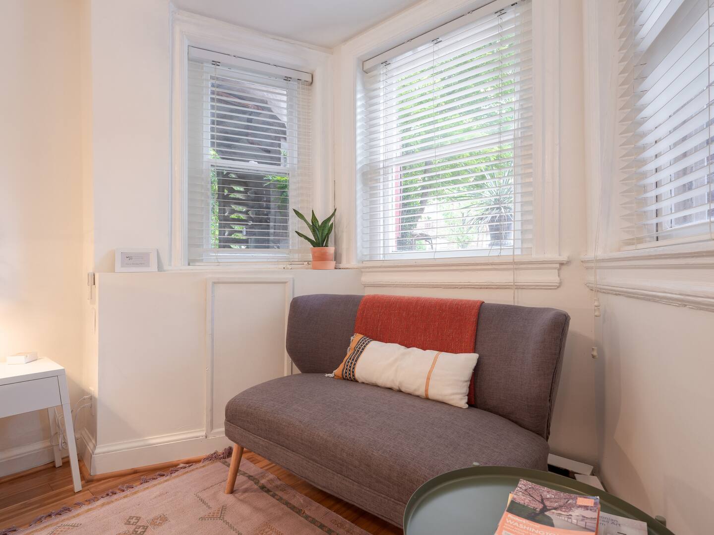 Relax after a long day in this tastefully renovated ground-level studio with period details and modern amenities. Warm by the electric fireplace surrounded by an antique carved mantle. Watch Netflix and Hulu from the comfort of the Queen-sized Tuft & Needle mattress. Prepare a delicious meal with ingredients from nearby Eastern Market and Union Market in the well-appointed vintage kitchen with dining space for two. Soak in the private full bathtub or rinse with the rain shower head. And enjoy a book over coffee in the bay window settee or front garden bench. This is your home away from home in DC.